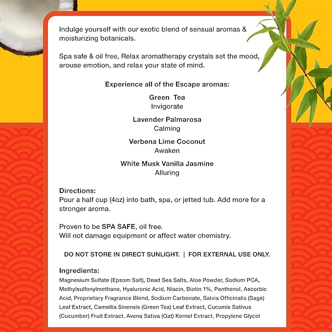 - BRIGHT & BALANCED TROPICAL SCENT: A crisp fusion of verbena, lime, and coconut brings an upscale island vibe to your spa session—fresh, modern, and crafted with premium aromatherapy bath salts for elevated unwinding.