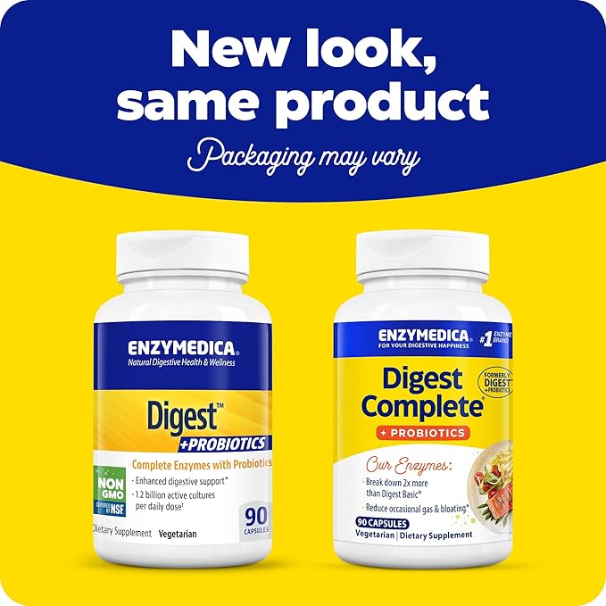 - 2-in-1 Formula: With full-range, everyday enzymes plus assured-potency probiotics, this supplement effectively breaks down carbs, fats, fiber and protein & boosts gut microbiome*; Delivers 2x the enzymes as Enzymedica’s Digest Basic