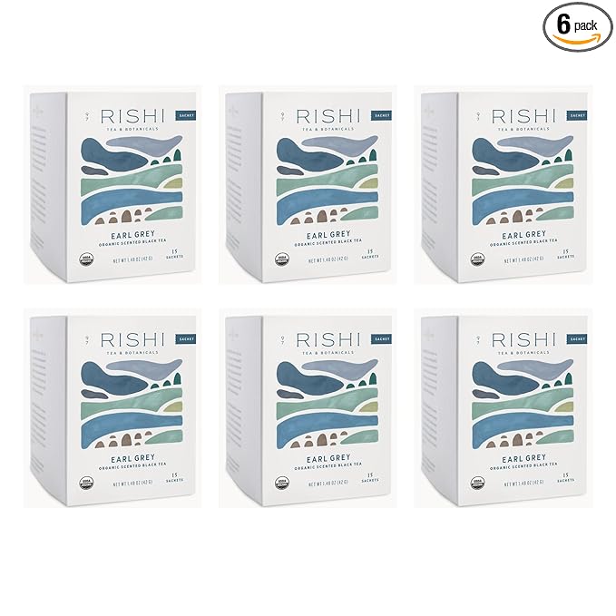 Rishi Tea Earl Grey Tea - Organic Sachet Tea Bags, Pure Black Tea with Bergamot Oil, Energizing & Caffeinated - 15 Count (Pack of 6)