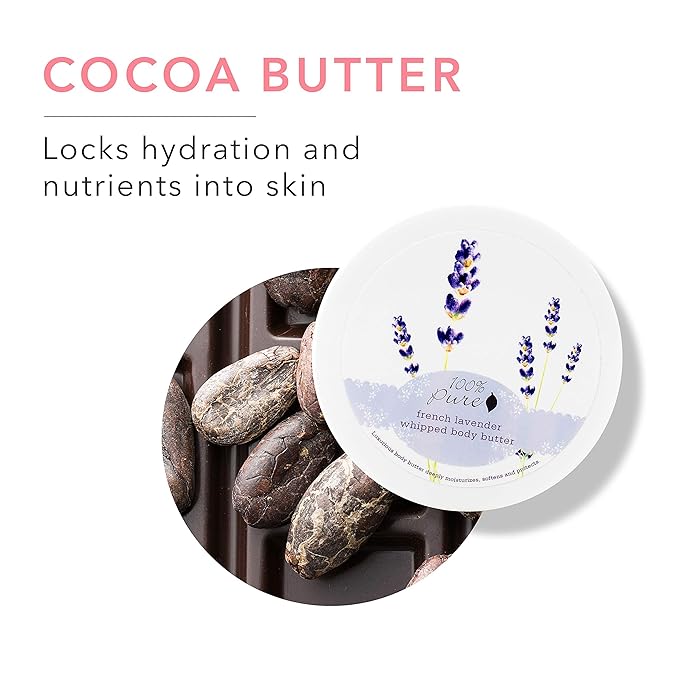 100% PURE French Lavender Whipped Body Butter, Body Lotion for Dry Skin, Made with Shea Butter, Cocoa Butter, Moisturizing Body Cream, Natural Lotion - 3.4 oz