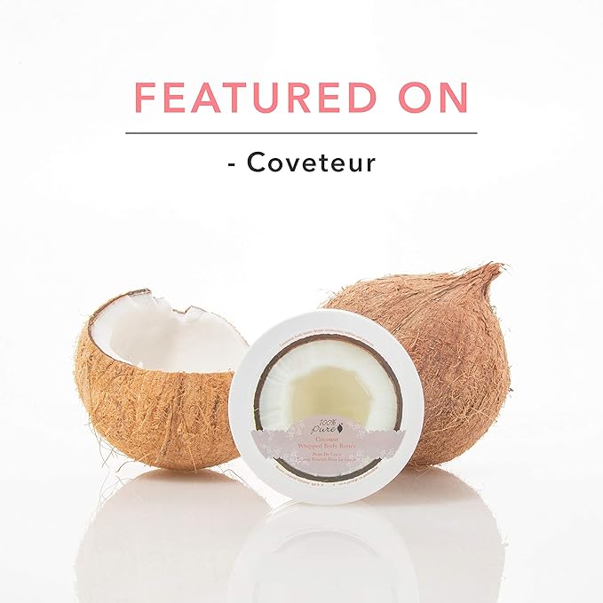 100% PURE Coconut Whipped Body Butter, Body Lotion for Dry Skin, Made with Shea Butter, Cocoa Butter, Moisturizing Body Cream, Natural Lotion - 3.4 oz