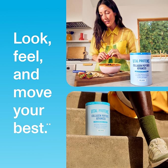 - SUPPORTS COLLAGEN PRODUCTION: With 100% daily value of Vitamin C, this Vital Proteins Collagen Peptides Advanced Powder helps promote collagen production which is important for maintaining healthy skin