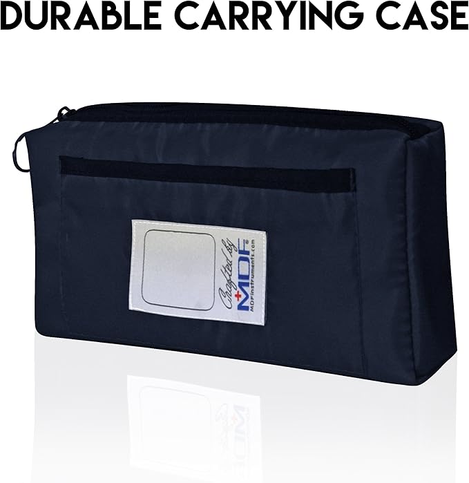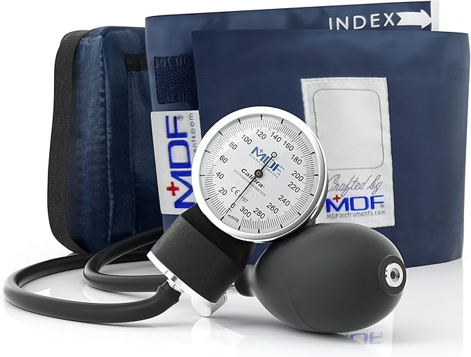 MDF Instruments, Calibra Aneroid Premium Professional Sphygmomanometer, Blood Pressure Monitor with Adult Cuff & Carrying Case, Lifetime Calibration, White Dial, Navy Blue Cuff, MDF808M04