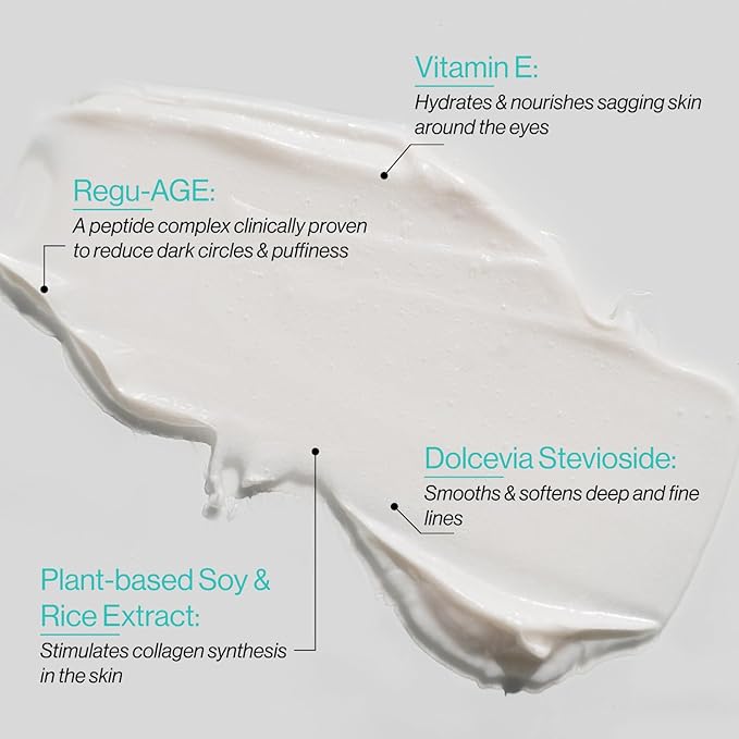 - A DOSE OF DAILY DEFENSE. This eye boosting blend boasts proprietary REGU AGE PF to restore, repair, and rejuvenate collagen and regenerative elastin fibers, lessen wrinkle depth, smooth the skin around the orbital area, and soothe tired, puffy eyes.