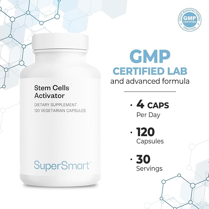 Supersmart Stem Cells Activator (Advanced Formula) - with Astragaloside, Fuidocan - Natural Stem Cells Supplement | Non-GMO & Gluten Free - 120 Vegetarian Capsules