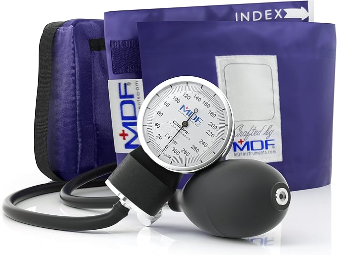 MDF Instruments, Calibra Aneroid Premium Professional Sphygmomanometer, Blood Pressure Monitor with Adult Cuff & Carrying Case, Lifetime Calibration, White Dial, Purple Cuff, MDF808M08