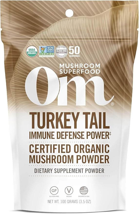 Om Mushroom Superfood Turkey Tail Organic Mushroom Powder, 3.5 Ounce, 50 Servings, Immune Support, Polysacchrides, Beta-Glucans, Gut Health & Holistic Defense Mushroom Supplement