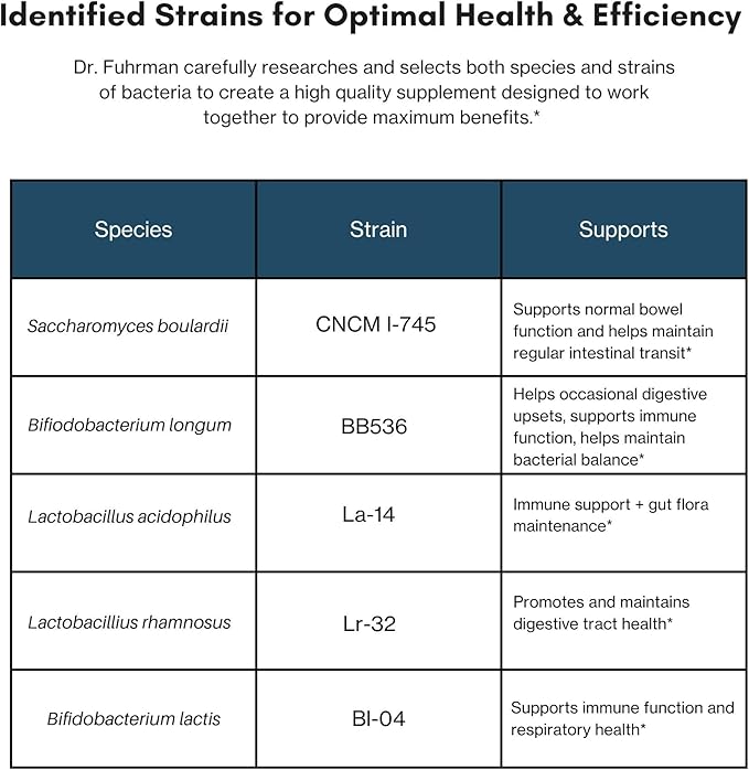 - TRUSTED BRAND WITH HIGH STANDARDS - Dr. Fuhrman's products are made with the highest quality ingredients and undergo rigorous testing for purity and potency. Our Flora Biotect supplement is no exception - it is backed by over 20 scientific studies and trusted by thousands of satisfied customers worldwide.