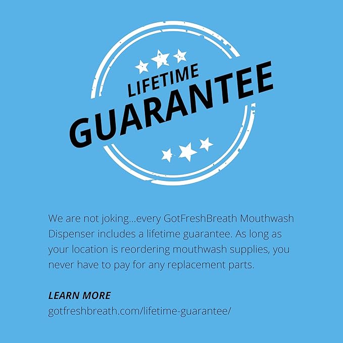 - Refreshing Flavor – Deliver lasting fresh breath thanks to 50 oz. of GotFreshBreath mouthwash— alcohol-free and loved for its balanced minty tingle without the burn. Your dispenser only works with our mouthwash bottles.