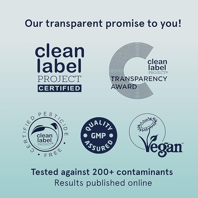 - Full Transparency: We strive to make the cleanest products. Every batch of every product is reviewed for purity and potency by The Clean Label Project. They use independent laboratories to test against 200+ contaminants and publish the results on their website using the respective batch number.