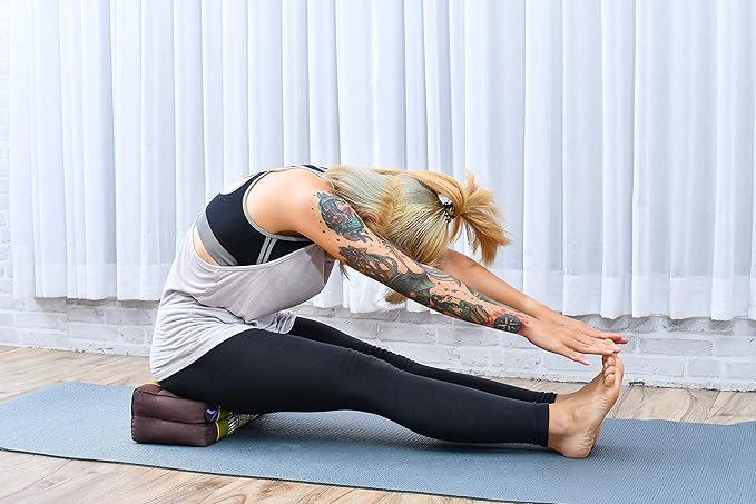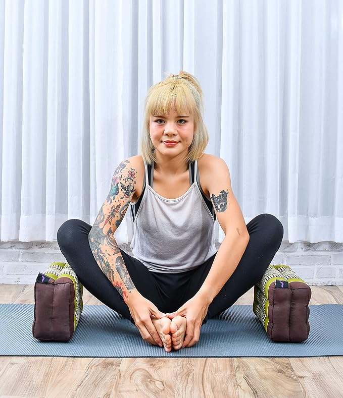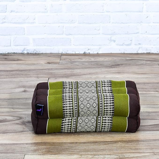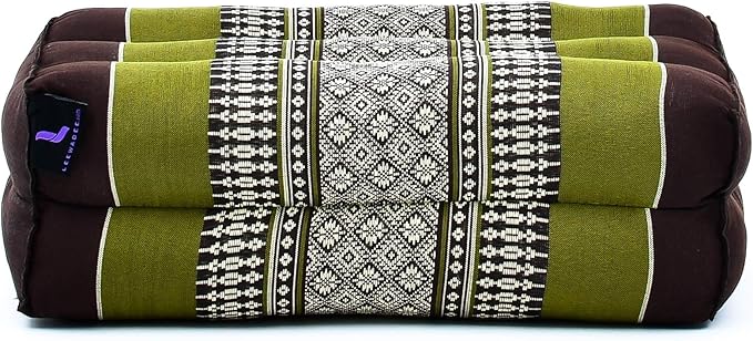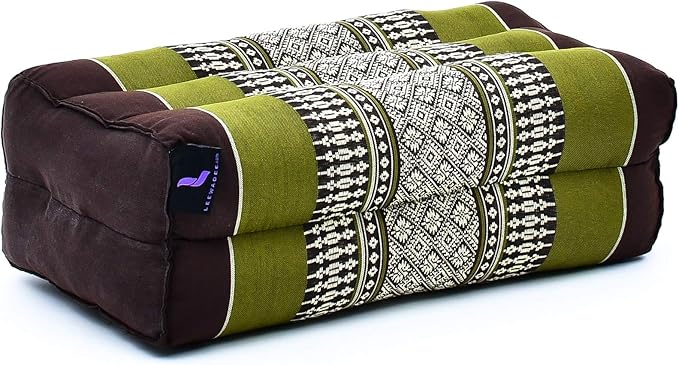 Leewadee Yoga Block – Floor Cushion for Yoga Practice, Meditation Seat Cushion for Workouts Filled with Kapok, 14 x 7 x 5 inches, Brown Green