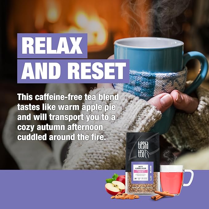 - CINNAMON ALMOND HERBAL TEA BLEND: Indulge in the cozy warmth of Tiesta Tea’s Nutty Almond Cream Cinnamon Herbal Tea. This caffeine-free blend brings warmth to your day and a comforting brew reminiscent of fall. Whether served hot or iced, enjoy a delightful cup of comfort any time of year.