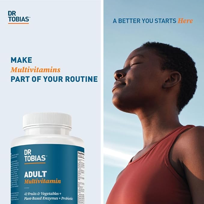 Dr. Tobias Adult Multivitamin for Women & Men, Immune Supporting Vitamins from 42 Fruits, Vegetables, Plus Probiotics, Vegan Multivitamins for Men & Women, Non-GMO, 90 Tablets, 30 Servings