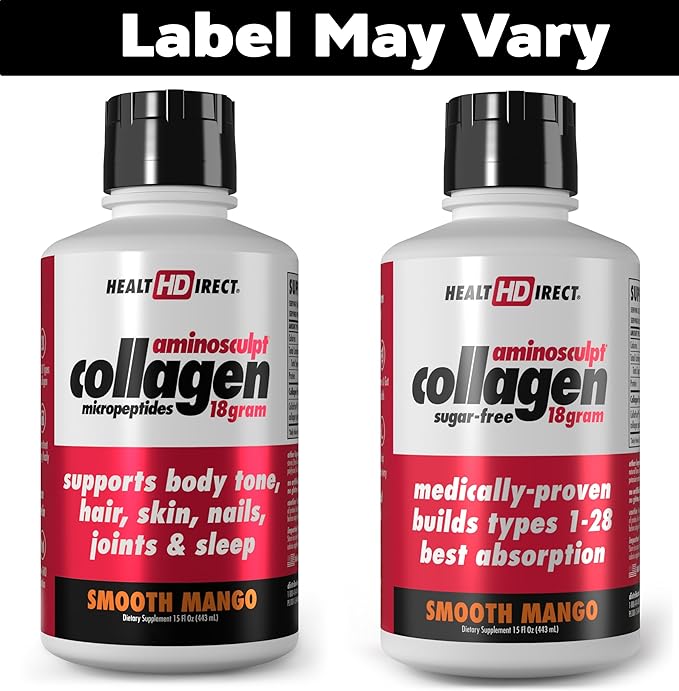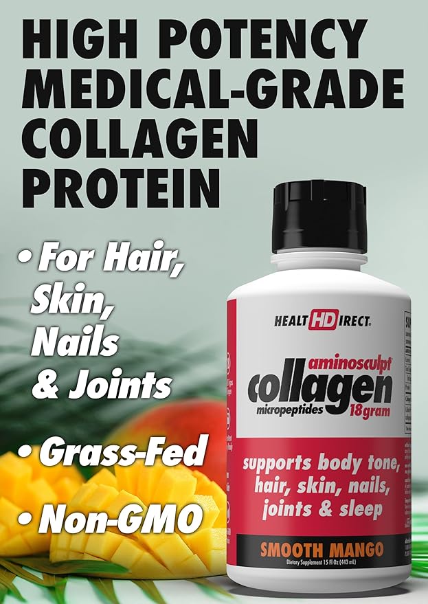 HEALTH DIRECT AminoSculpt Sugar-Free Collagen Supplement - High Potency Medical-Grade Protein for Hair, Skin, Nails & Joints, Grass-Fed, Non-GMO, Liquid Collagen - Smooth Mango - 15 Fl Oz