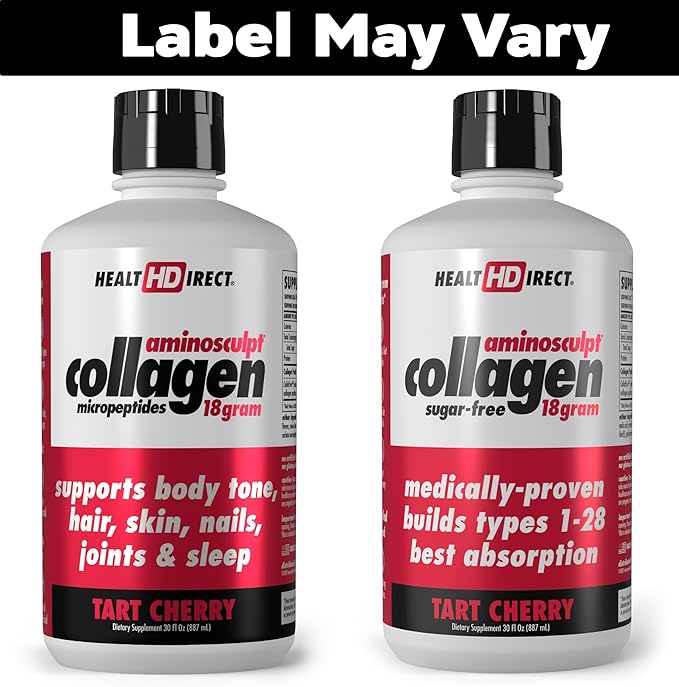 HEALTH DIRECT AminoSculpt Sugar-Free Collagen Supplement - High Potency Medical-Grade Protein for Hair, Skin, Nails & Joints, Grass-Fed, Non-GMO, Liquid Collagen - Tart Cherry - 30 Fl Oz