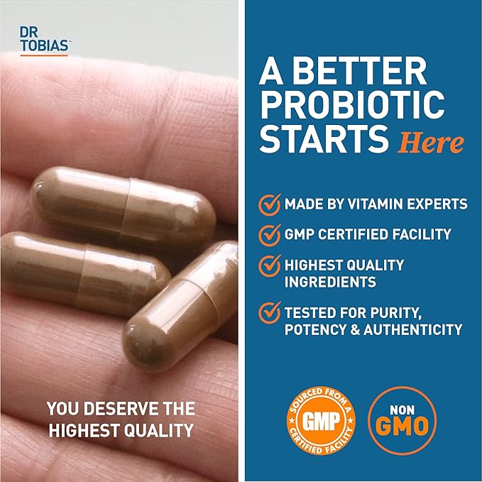 Dr. Tobias Probiotics 30 Billion, 10 Strains, 30 Billion CFU's, Targeted Release Probiotics for Women & Men, Supports Digestive Health, Shelf-Stable, Non-GMO, 30 Capsules, 30 Servings