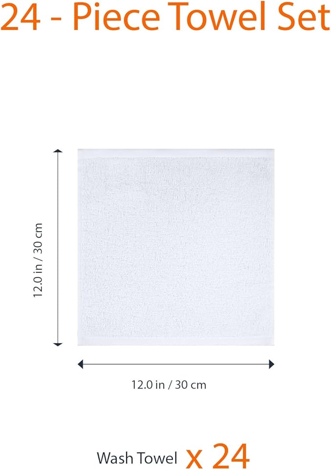 Amazon Basics Fast Drying Cotton Washcloths for Bathroom, Machine Washable, Soft and Highly Absorbent, 12 x 12 in, White, 24-Pack
