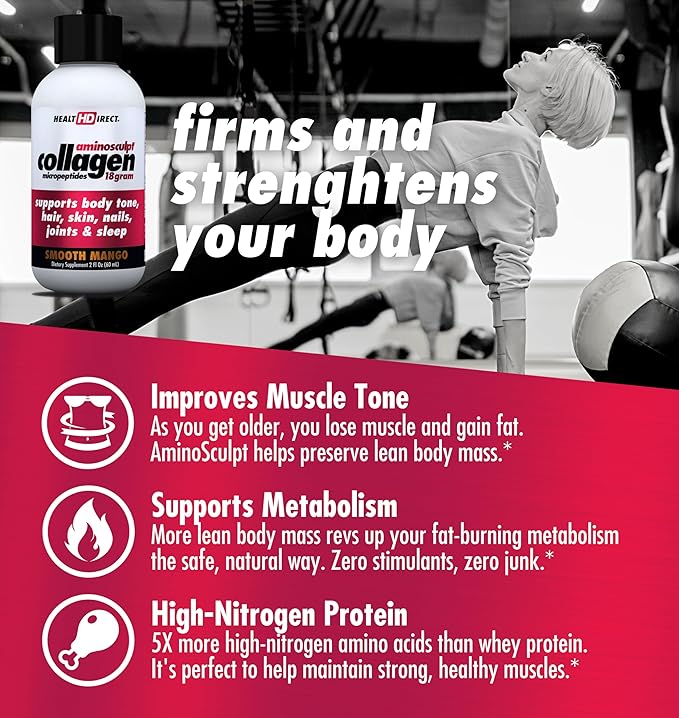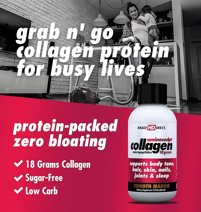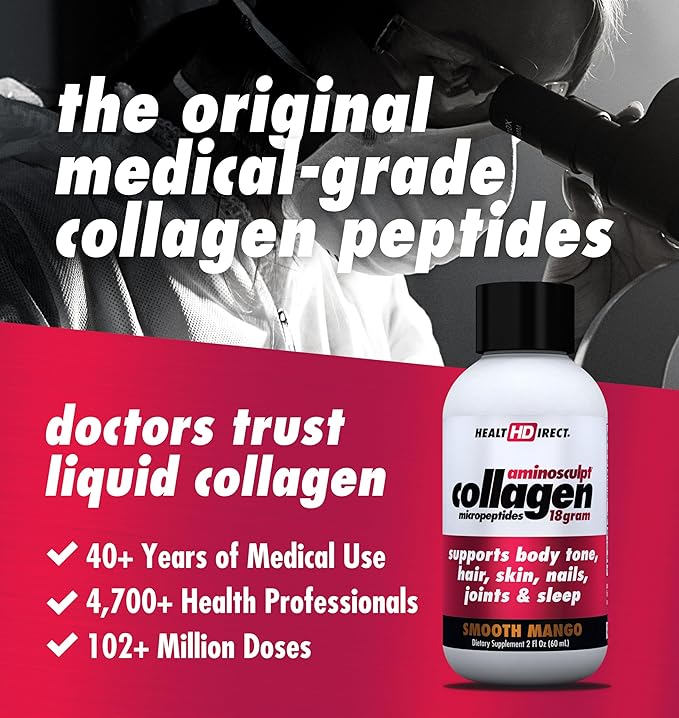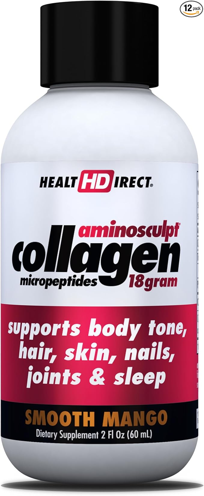 HEALTH DIRECT – Medical-Grade Liquid Collagen Shots – AminoSculpt Sugar-Free – Smooth Mango – 12 Servings, (12pk, 2oz Shots) – Good for Joints, Bones, & Sleep – Better Hair, Skin & Nails