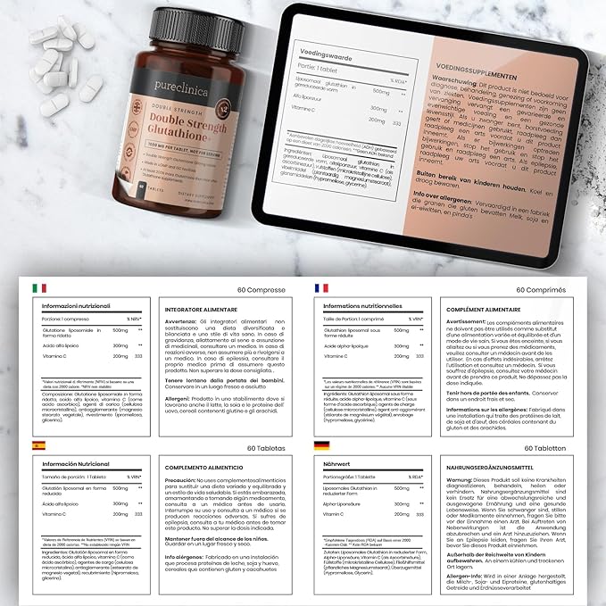 - DOUBLE STRENGTH - With a huge 1000mg of active ingredients per tablet, including 500mg of reduced Glutathione