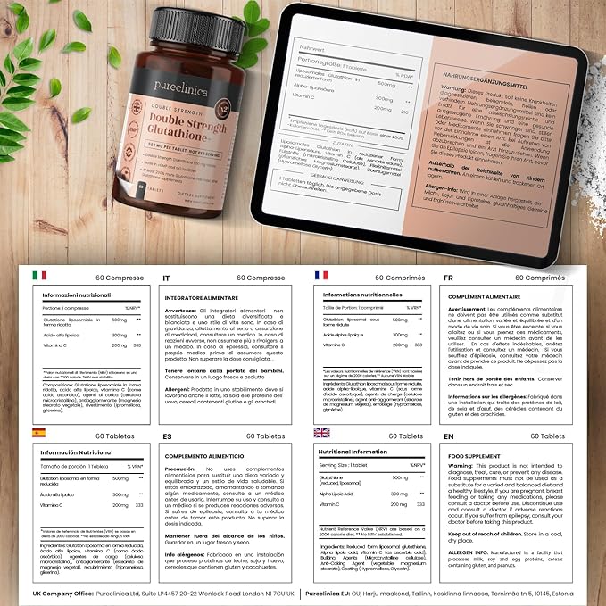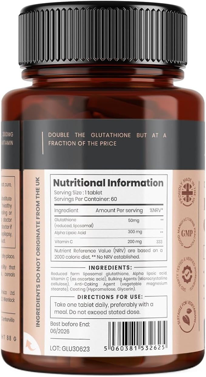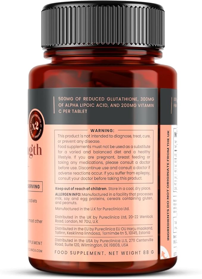 - 500mg Glutathione per tablet - 200% stronger than regular glutathione tablets