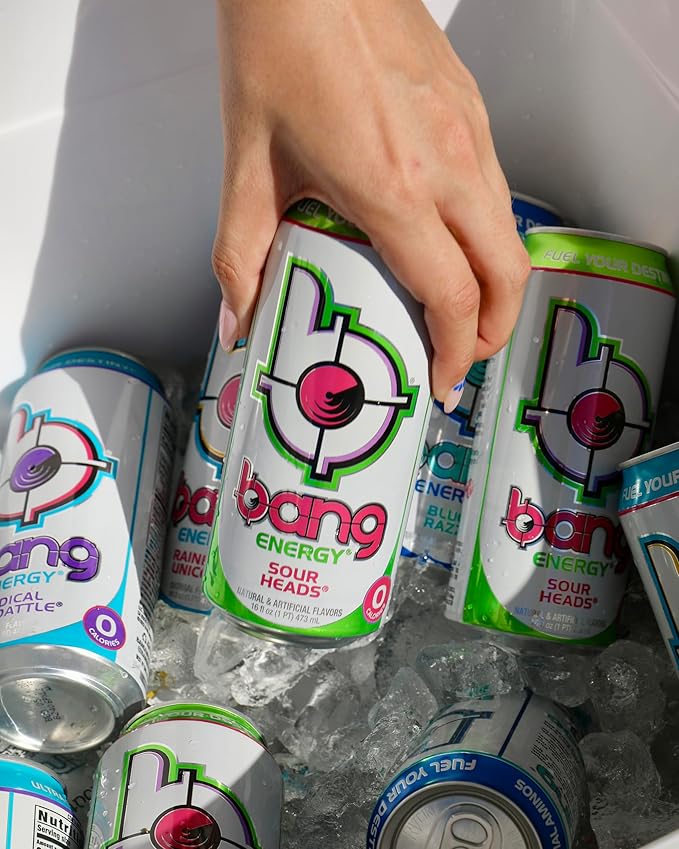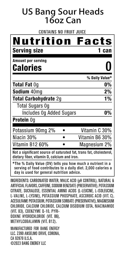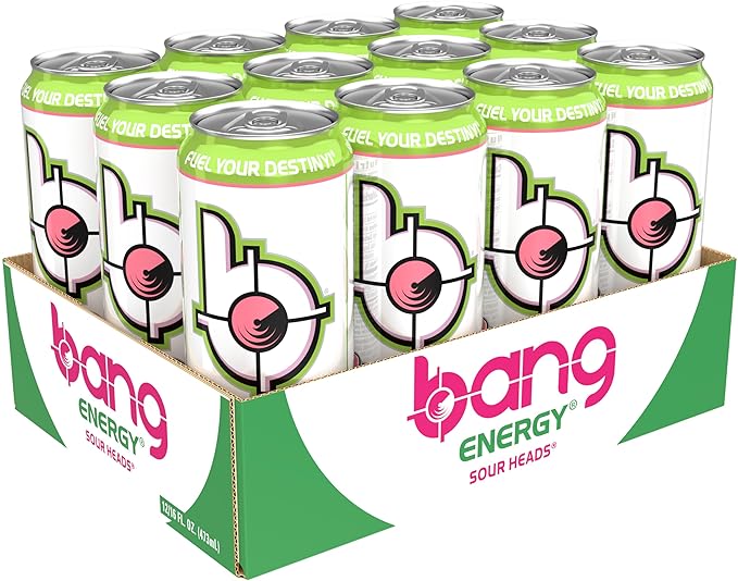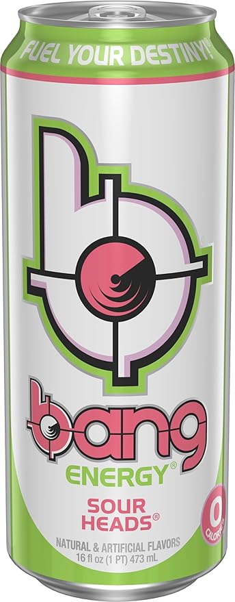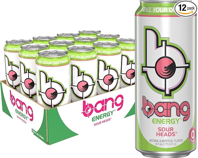 Bang Energy Sour Heads, Sugar-Free Energy Drink, 16-Ounce (Pack of 12)