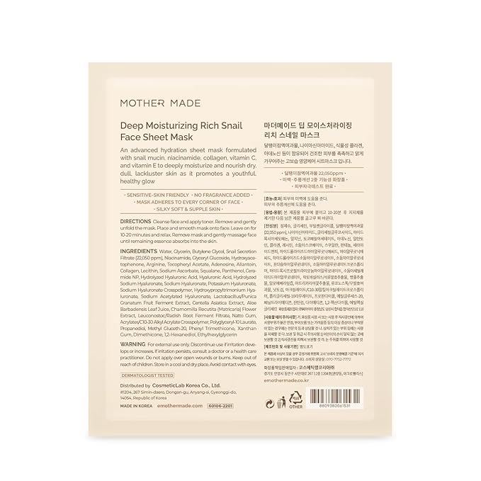 - NO SNAILS ARE HARMED - Snail Secretion filtrate contained in the mask is collected and processed in a safe and environmentally friendly way that NO snails being harmed or stressed during the collection process; MOTHER MADE is cruelty-free!