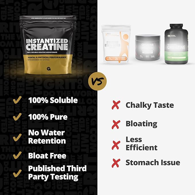 - INSTANTIZED CREATINE: Gains in Bulk Instantized Creatine is a 100% soluble creatine monohydrate powder, delivering all the benefits of creatine without the bloating, water retention, or gritty texture. Backed by research, it helps enhance muscle endurance, strength, and size for optimal performance.