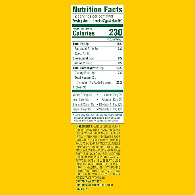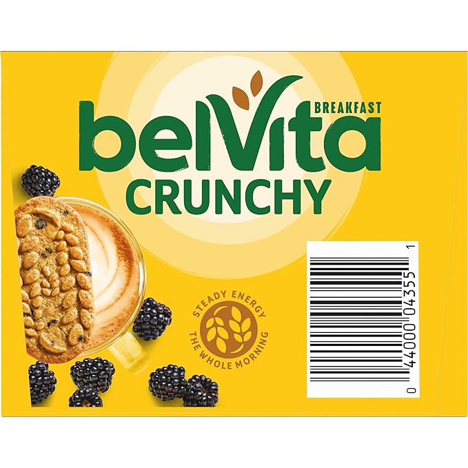 - One box with 12 packs, 4 biscuits per pack, of belVita Blueberry Breakfast Biscuits (packaging may vary)