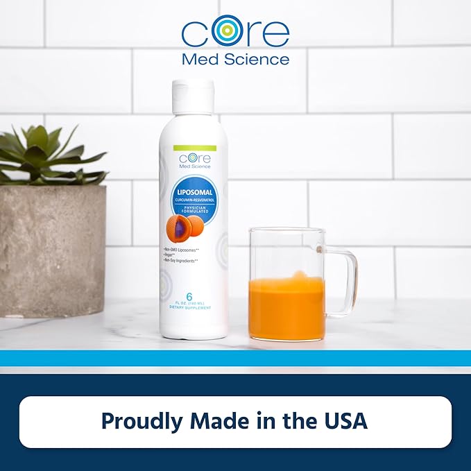 - A POWERFUL COMPOUND: Core Med Science’s Liposomal Curcumin with Resveratrol is a liquid supplement formulated to act as a powerful antioxidant in the body. It can help counteract cellular damage and support various bodily processes for optimal health. Liposomal technology allows for optimal absorption to help ensure nutrients reach the bloodstream quickly and efficiently. One 6 fl oz bottle. 6ml (30 servings).