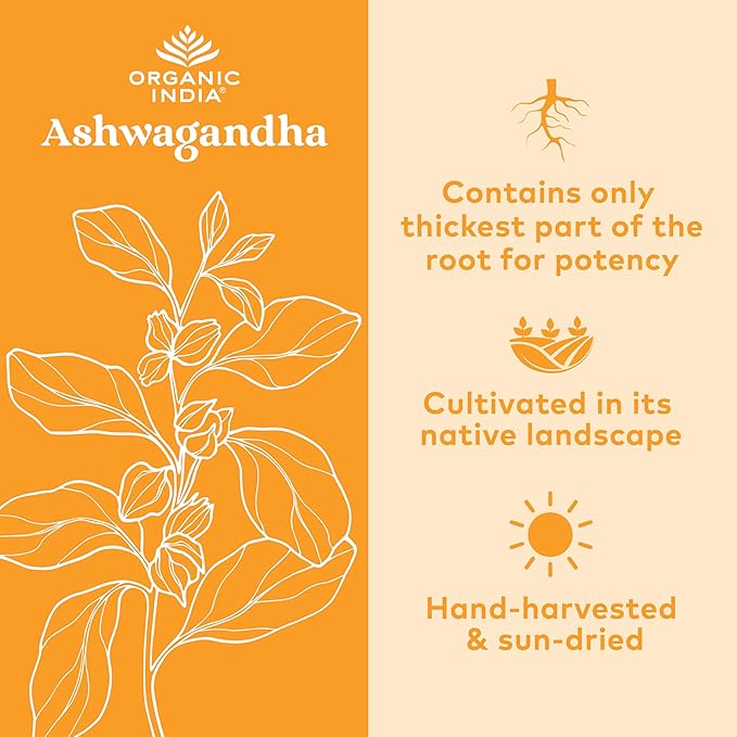 - ADRENAL FUNCTION ENHANCEMENT: Support steady hormone release from the adrenal glands for all-day balance, promoting overall well-being and vitality with Organic India Ashwagandha