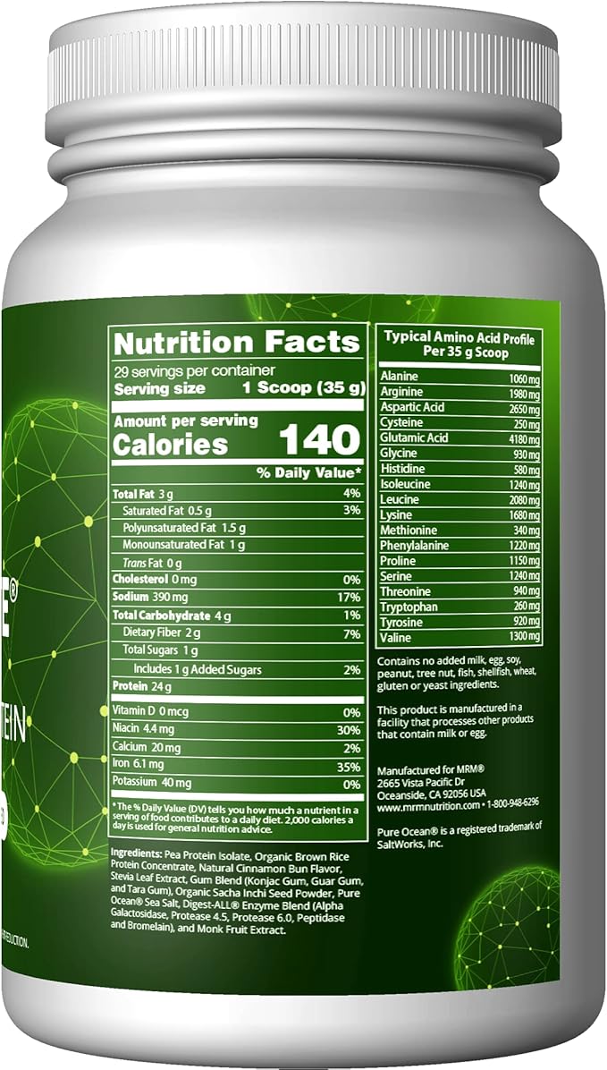 MRM Nutrition Veggie Elite Performance Protein | Cinnamon Bun Flavored| Plant-Based Protein| Easy to Digest | with BCAAs| Vegan + Gluten-Free | Clinically Tested| Digestive enzymes | 30 Servings