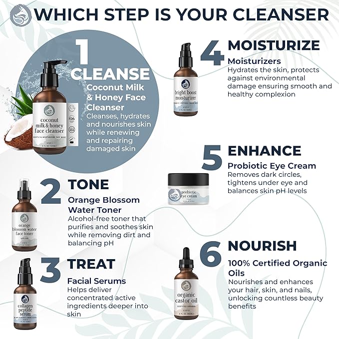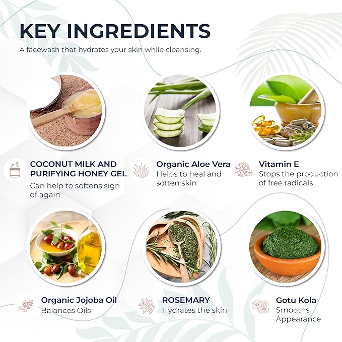 - Natural Anti-Aging Cleanser: Nutrients soften signs of aging by supporting smoother, more elastic skin. A perfect daily solution to help clear away impurities while helping renew and refine texture. Powered by Organic Aloe, Coconut Milk, and raw Honey, this formula promotes a calm, youthful glow.