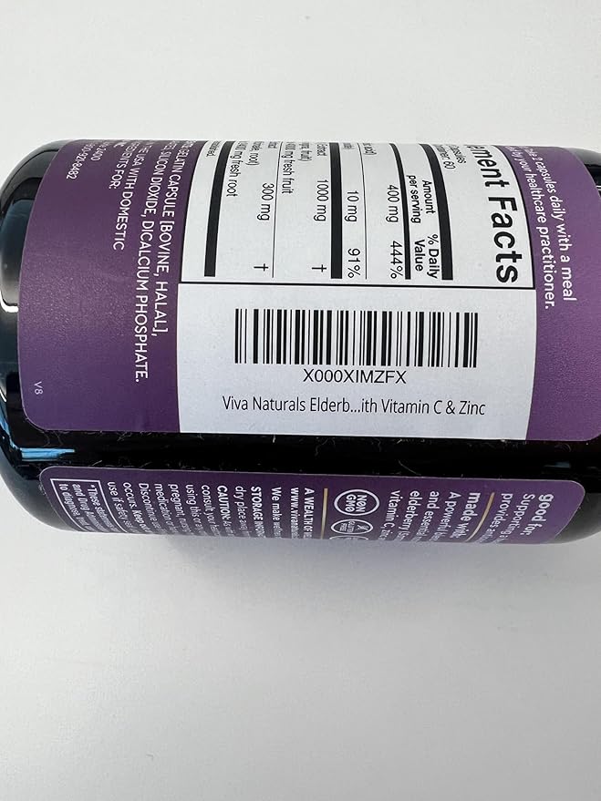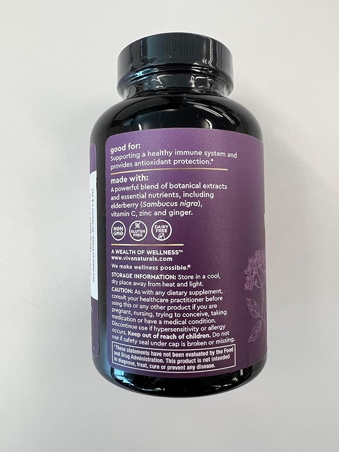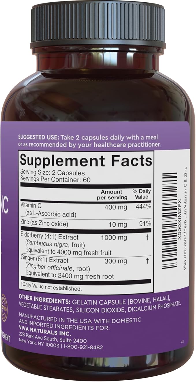 Viva Naturals Elderberry with Vitamin C and Zinc (120 Capsules) - 1000mg Sambucus Elderberry Immune Support Supplement, Black Elderberry Capsules for Adults, Elderberry Vitamins - 2 Months Supply