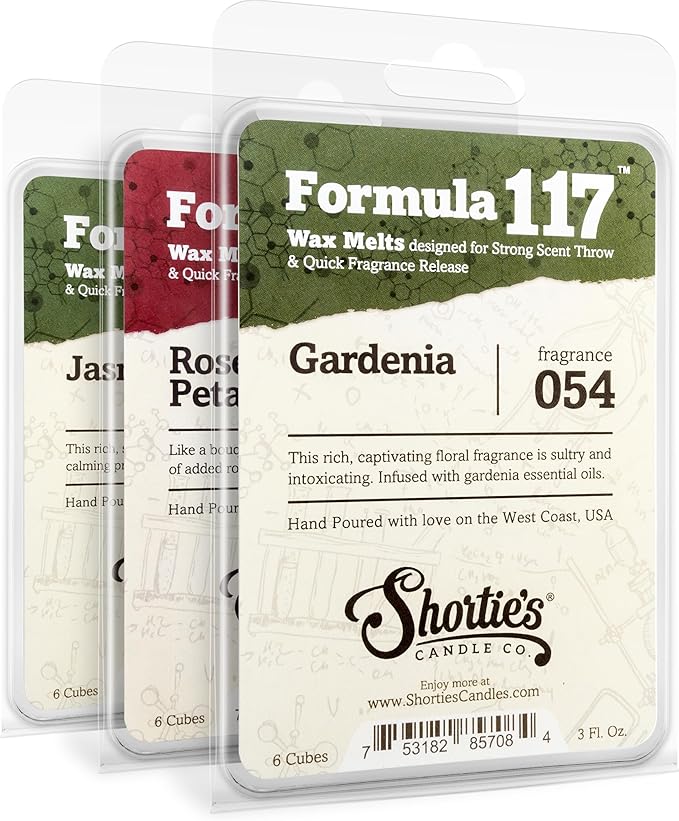 Floral Wax Melts Variety Pack - Rose Petals, Jasmine, Gardenia - Formula 117 - 3 Highly Scented 3 Oz. Bars - Made With Essential & Natural Oils - Flower & Floral Warmer Wax Cubes