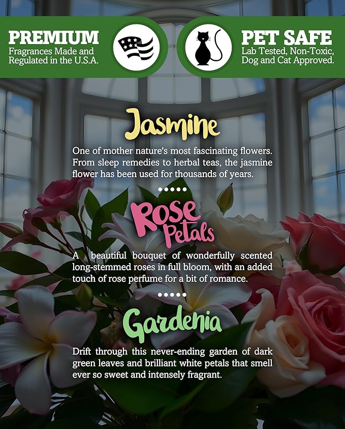 - Three of our best selling floral fragrances perfect for any occasion: Jasmine, Rose Petals, and Gardenia.