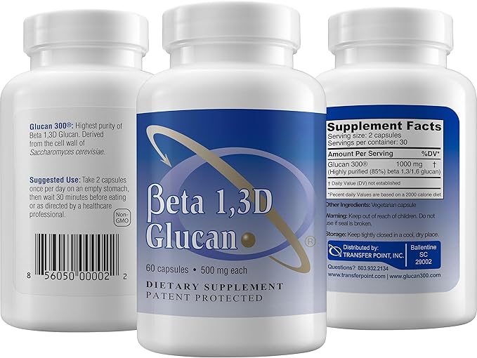 - ALL NATURAL: sourced from Saccharomyces cerevisiae (Baker’s yeast) and Generally Regarded As Safe (G.R.A.S. rated). Transfer Point’s Beta 1,3D Glucan is also non-gmo, vegan, and does not contain any sweeteners or artificial flavors. Our 500mg capsules contain no fillers and are easy to open for mixing pure beta glucan powder with applesauce or other foods for easier swallowing.