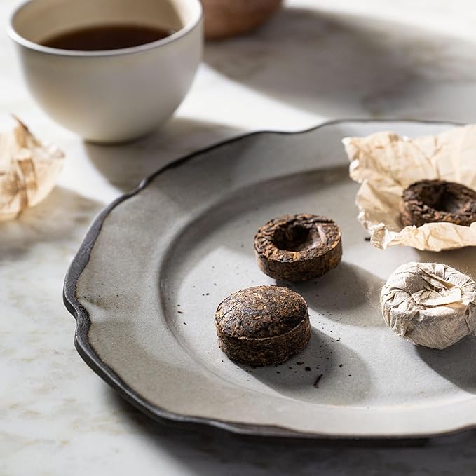- Ancient Pu'er Tuo Cha Tasting Notes - Traditional style Pu'er with a robust, soothing flavor and sweet notes of dark mocha