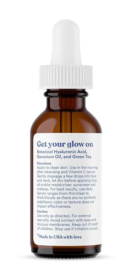 - GET YOUR GLOW ON: Along with hyaluronic acid, this serum has been formulated with Vitamins C & E, Green Tea, geranium & jojoba oil, and aloe. These high-quality ingredients combine to create the ultimate hyaluronic acid serum.
