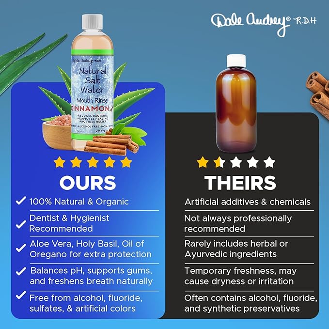 Dale Audrey Natural Pink Himalayan Saltwater Mouth Rinse | Organic Cinnamon Flavor I Fluoride Free Freshens Breath | Alcohol & Cruelty Free | Teeth Cleaner Mouthwash & Rinse for Healthy Gums-16 FL Oz
