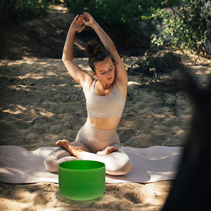 TOPFUND Green F Note Crystal Singing Bowl Heart Chakra 8 inch with Heavy Duty Carrying Case and Suede Mallet