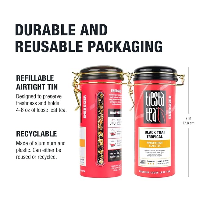 Tiesta Tea - Black Thai Tropical, Loose Leaf, Mango Citrus Black Tea, Premium Blend, High Caffeinated, Make Hot or Iced & Brews up to 50 Cups, 4.5oz Refillable Tin