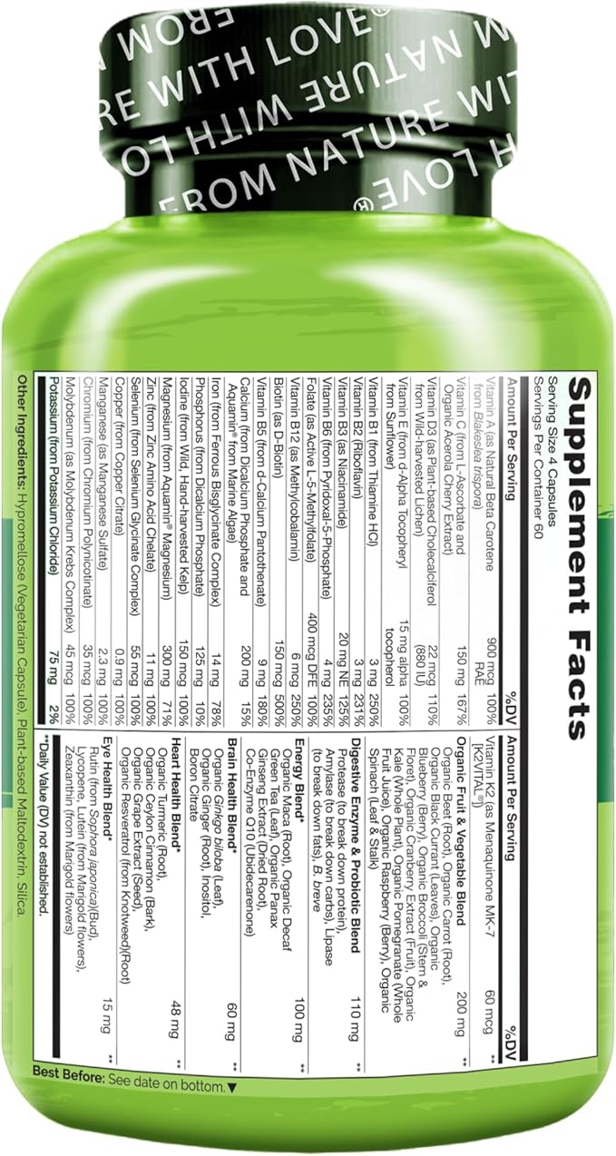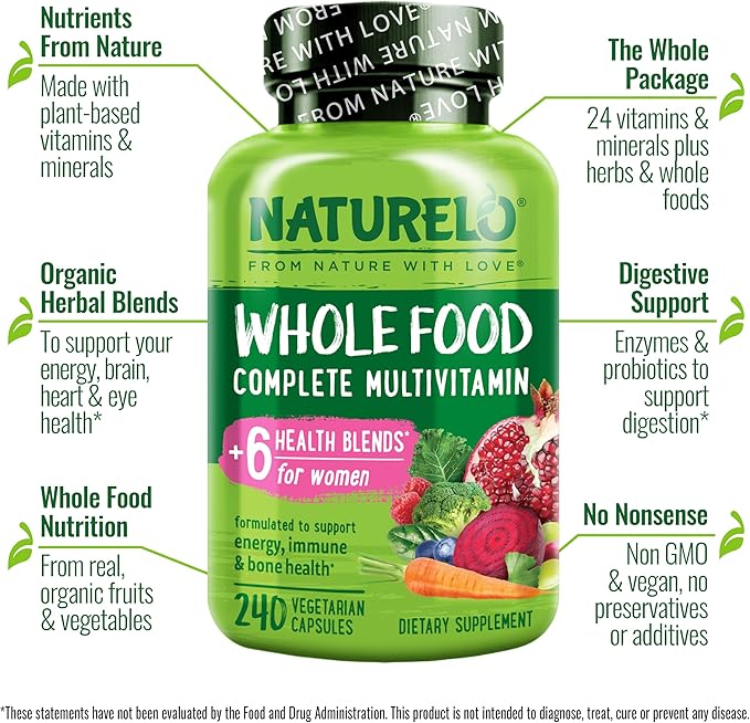 - WHOLE FOOD NUTRITION: Naturelo multivitamins are made with real, organic fruits and vegetables for that whole food nutrition your body craves, complete with nutritional cofactors that help your body recognize and absorb the nutrients.