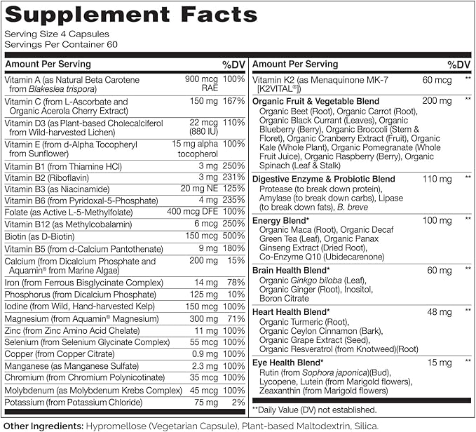 - HEALTHY GUT SUPPORT: A blend of digestive enzymes and probiotics is included to help your body break down and absorb the nutrients in your multivitamin and your food, and to support healthy digestion and a happy gut.
