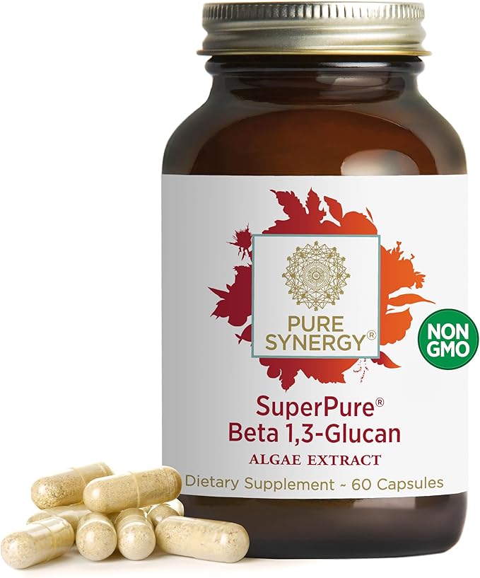 PURE SYNERGY SuperPure Beta 1,3-Glucan Extract | 500 mg Beta 1,3-Glucan Supplement from Algae | Yeast-Free, Non-GMO, Standardized Extract | Supports Immune Health & Digestion (60 Capsules)