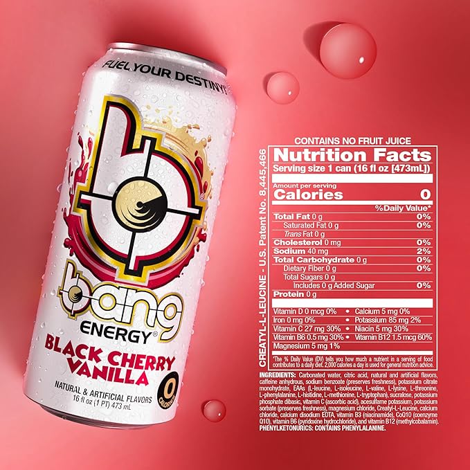Bang Energy Black Cherry Vanilla, Sugar-Free Energy Drink, 16-Ounce (Pack of 12)