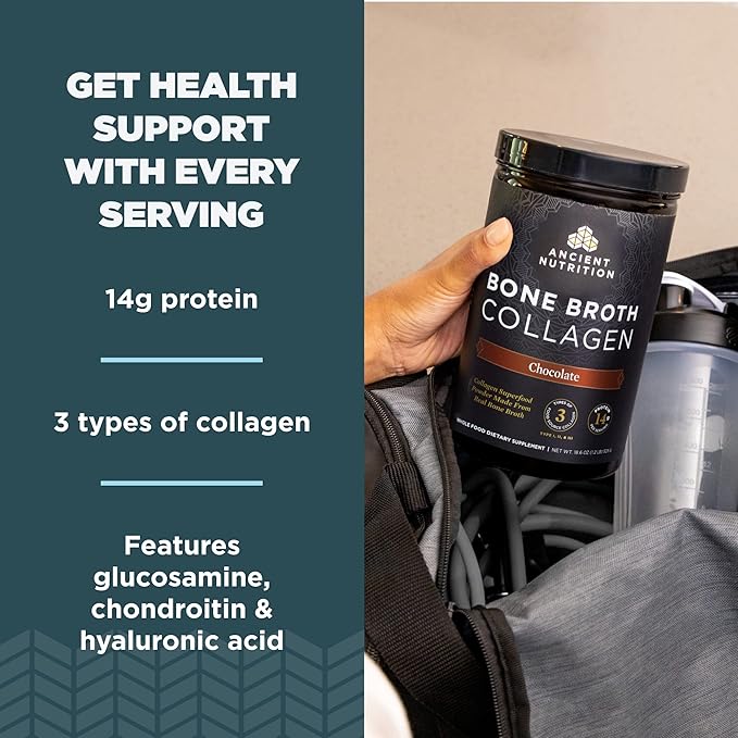 Ancient Nutrition Collagen Powder, Bone Broth Collagen, Chocolate, Hydrolyzed Multi Collagen Peptides, Supports Skin and Nails, Joint Supplement, 30 Servings, 18.6oz