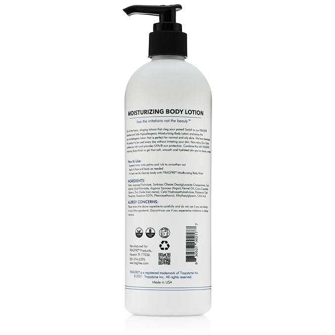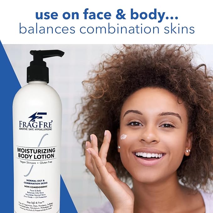 Moisturizer for Sensitive Skin 16oz: Non Comedogenic Zinc Oxide Lotion - Parabens Free Hypoallergenic Fragrance Free - Sun Protection for Oily and Combination Skins - Argan Oil Vegan No Gluten