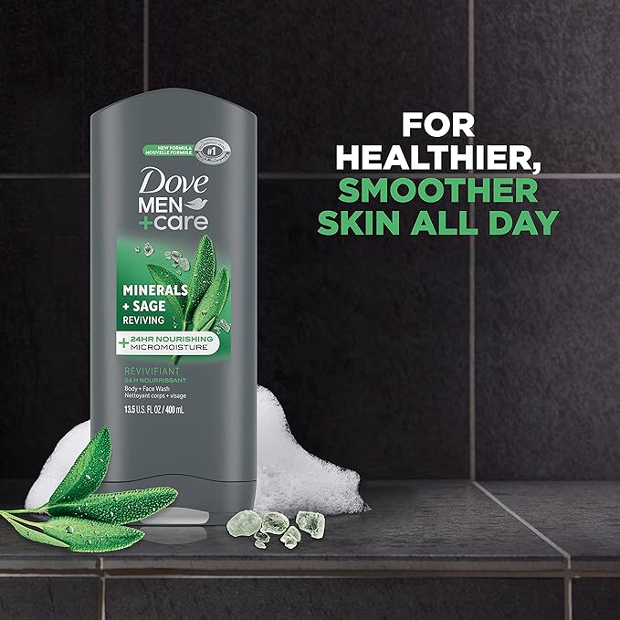 - FOR HEALTHIER, SMOOTHER FEELING SKIN ALL DAY: Dove Men+Care Minerals & Sage men's face and body wash hydrates your skin to keep it feeling healthy and smooth all day