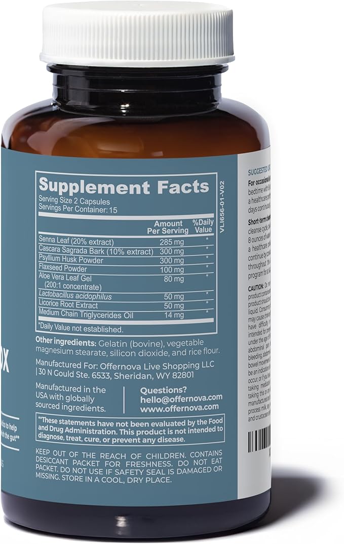 - Powered by botanicals including Senna Leaf extract and Cascara Sagrada extract that work as natural laxatives.