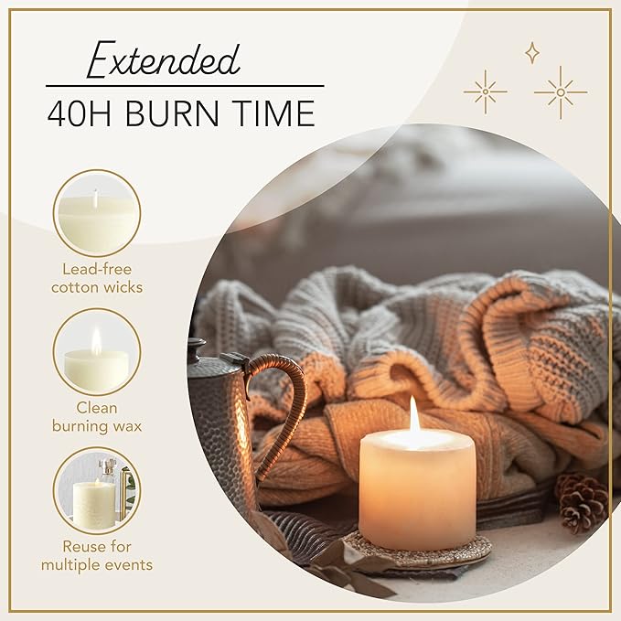 - FOR ANY OCCASION: Dreaming about a festive dinner decor? Our white unscented candles make every place better and add a lush ambiance for a romantic dinner date, relaxing bath, or wedding decor.